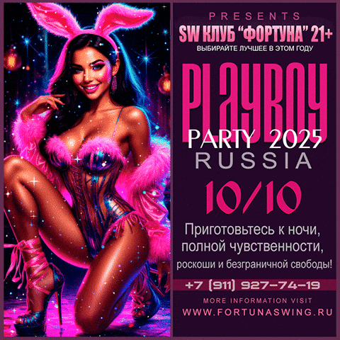 10 октября распахнет свои двери самое соблазнительное и интригующее событие этой осени – Playboy Party в легендарном свингер клубе “Фортуна”! Приготовьтесь к ночи, полной чувственности, роскоши и безграничной свободы.